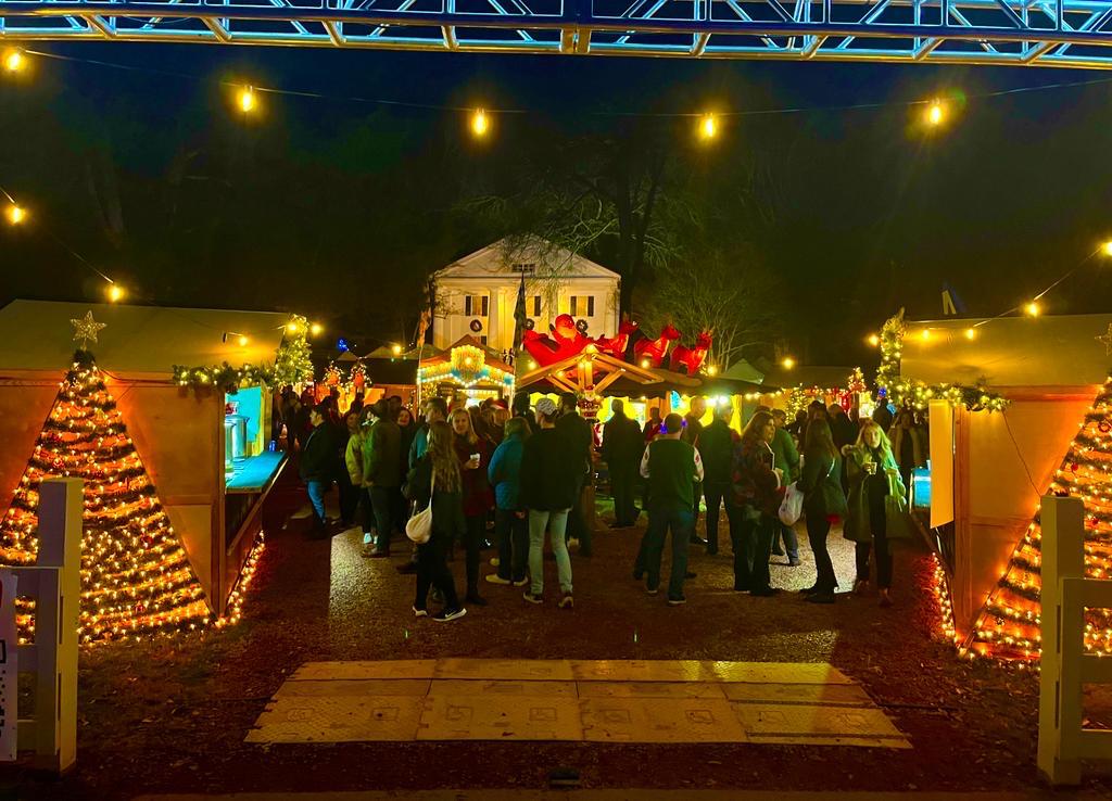 This market feels like a true European Christmas village. Wooden huts line the lawn, each filled with artisan gifts such as handcrafted ornaments, wooden toys, candles, and winter décor. Live music and festive performances often fill the evening air.
